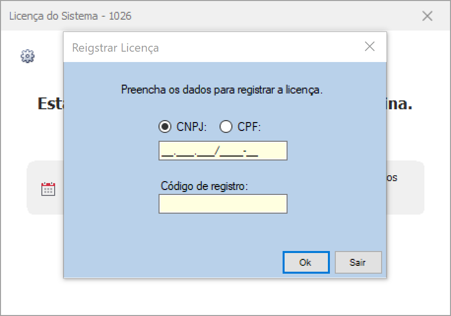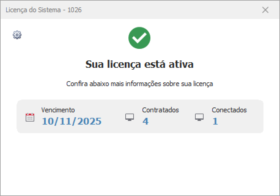 Observação: é possível acessar a qualquer momento a tela de Licenças do Sistema, código de acesso rápido "1026", indo ao menu superior do sistema.