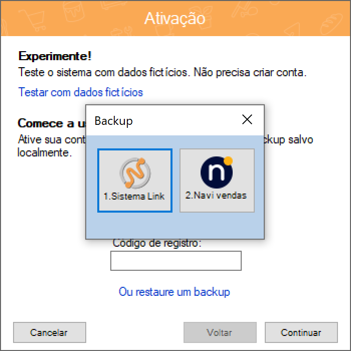 Escolha a opção de backup Sistema Link.