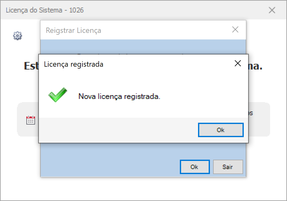 Feito isso, é mostrada a mensagem de Nova licença registrada.