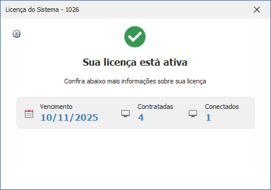Você pode conferir o vencimento, a quantidade de licenças contratadas e acompanhar o número de dispositivos conectados acessando a tela “Licenças do Sistema - 1026” do Link.