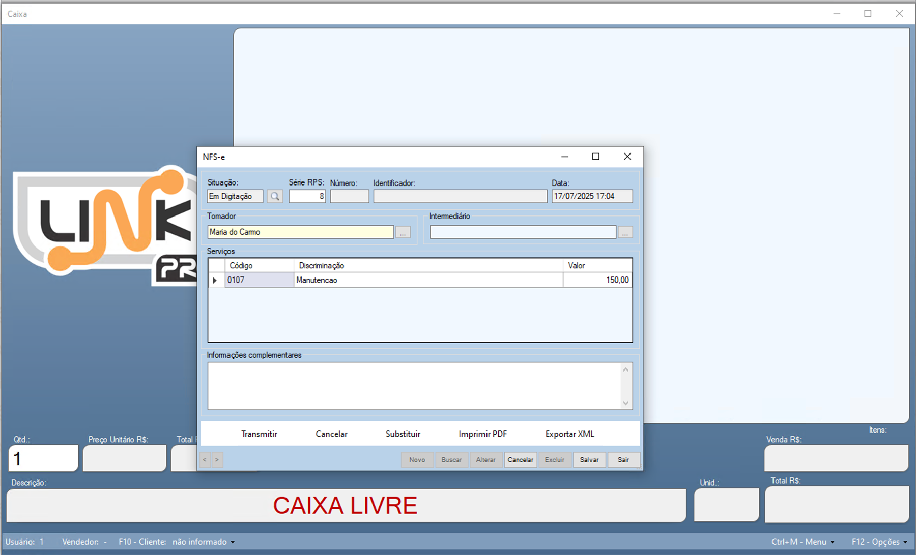 Emissão de NFS-e no Caixa