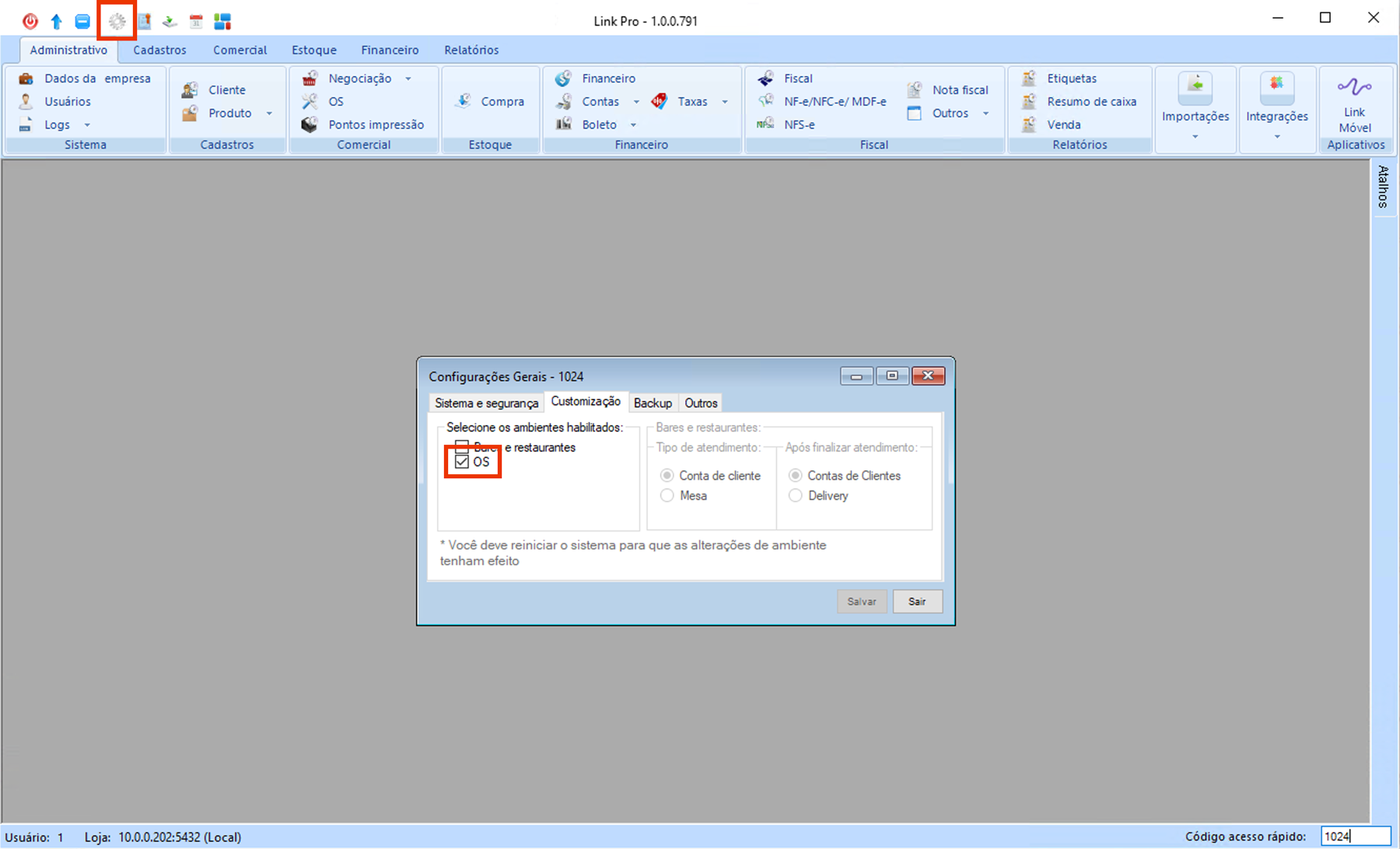 Para emissão de NFS-e no sistema Link, é necessário estar com o módulo O.S. (Ordem de Serviço) habilitado.