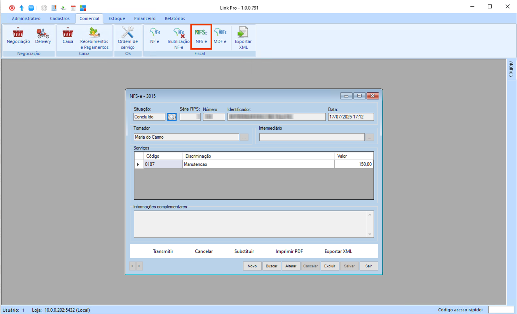 A janela "NFS-e" será aberta.